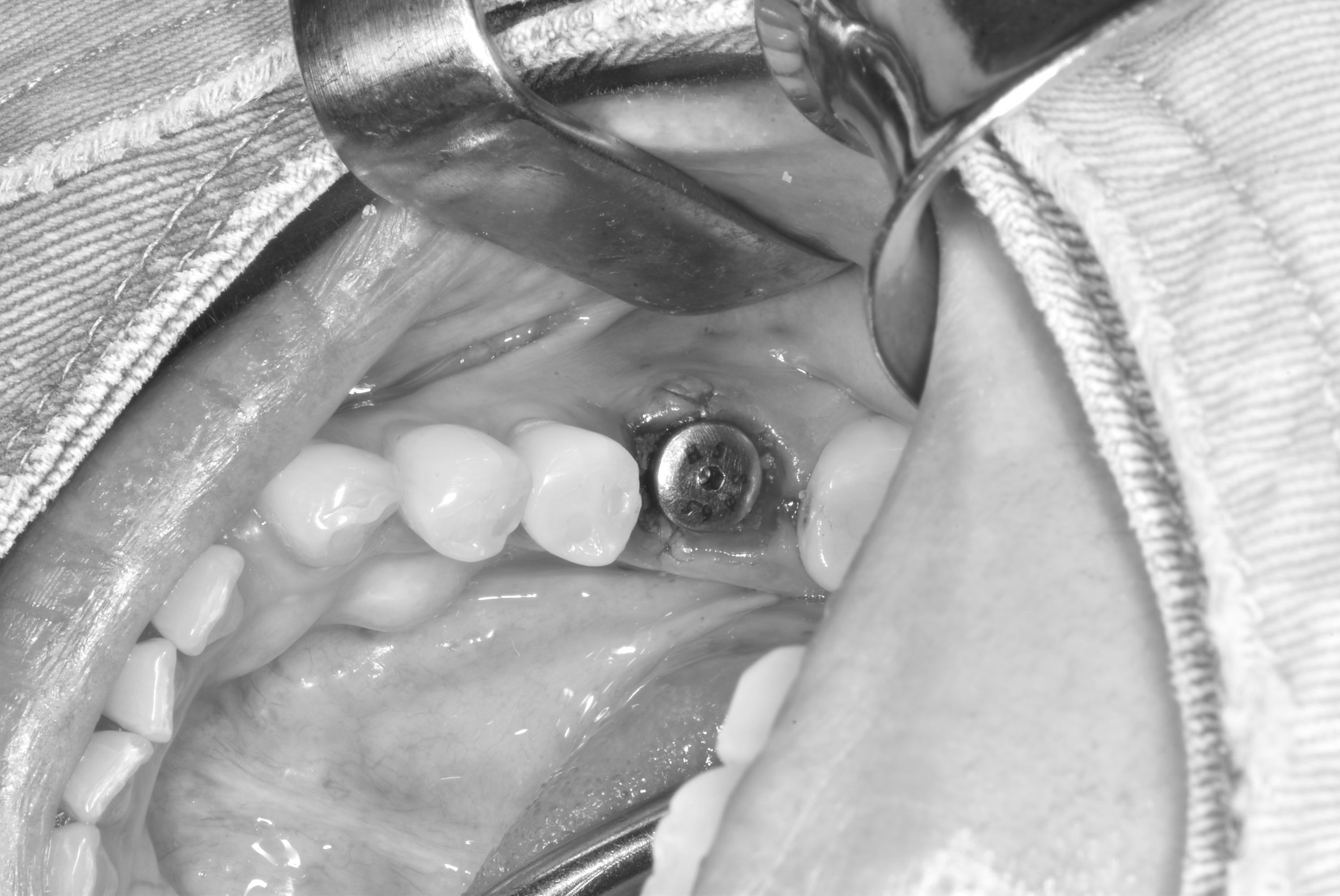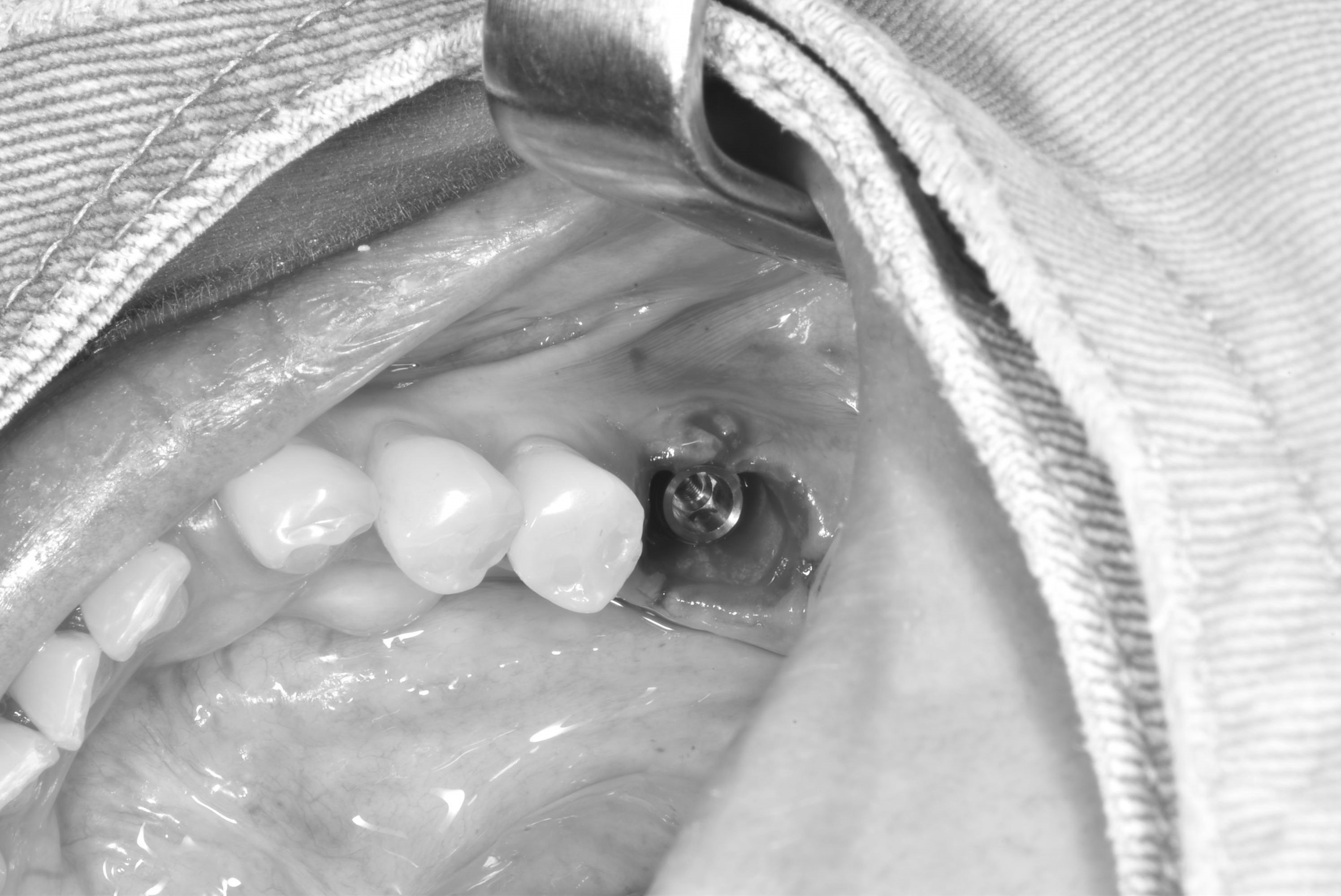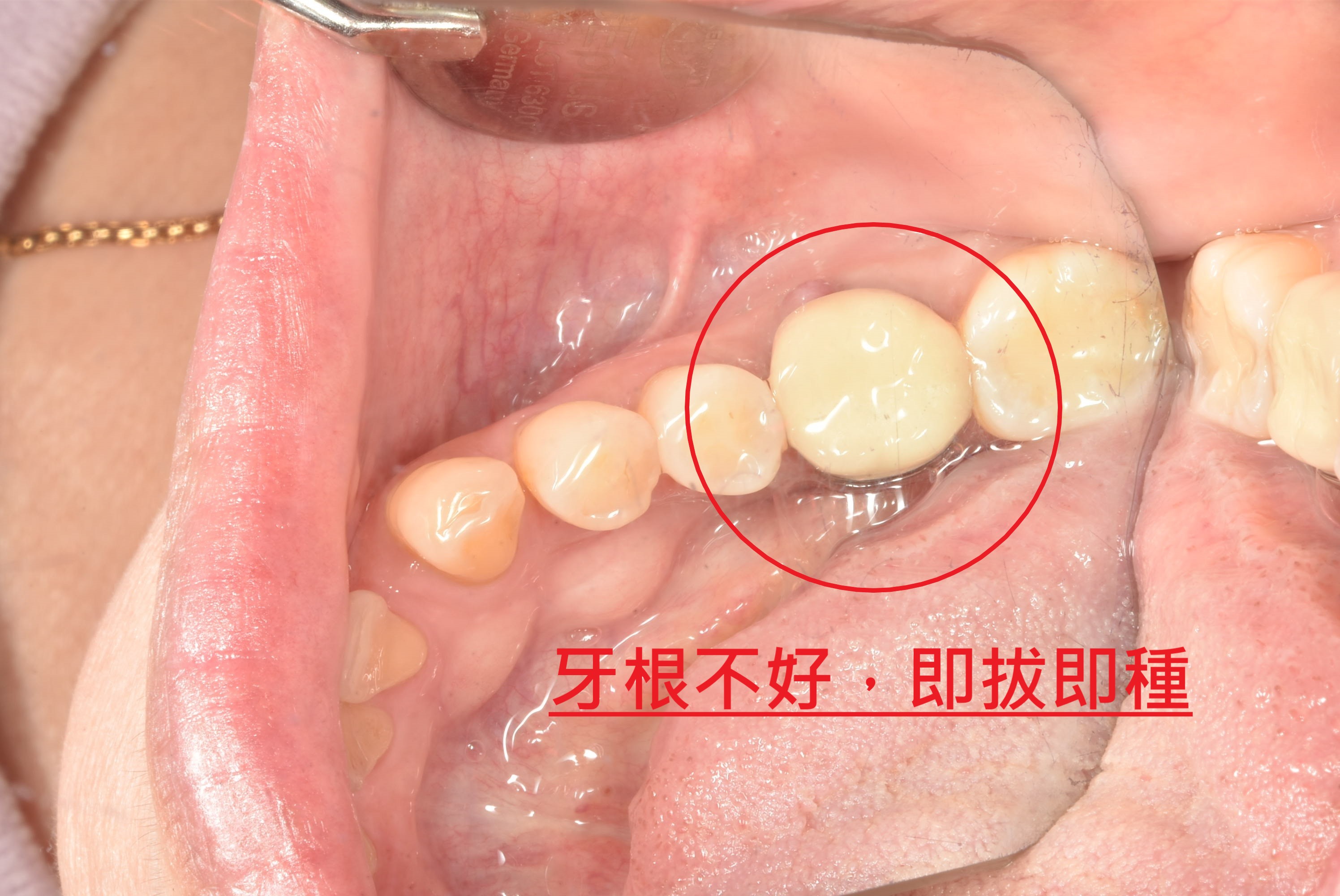 立即拔除,當天完成植牙手術,並鎖上癒合螺帽